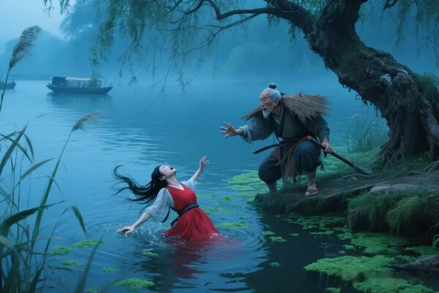 水里突然传来女人的呼救声。沈樵吓了一跳,循声望去,只见个穿红裙的女子在水里挣扎,青丝散开漂在水面,像团散开的墨。"姑娘别急,我来救你!"他解下腰带系在树桩上,刚要下水,却被个声音喝住。