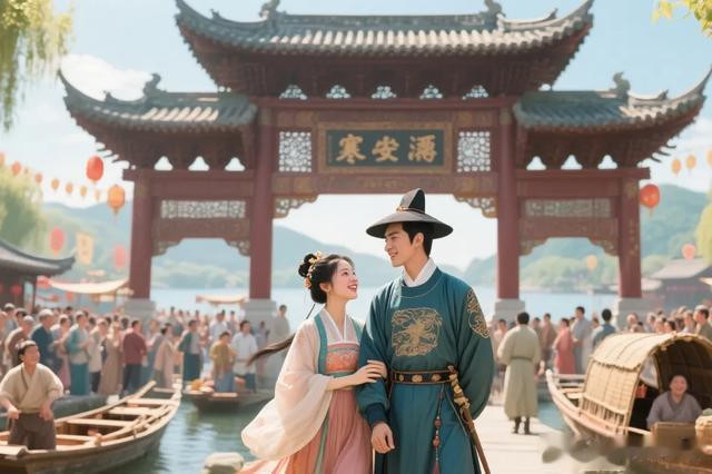三年后,寒溪渡成了方圆百里最热闹的码头。沈樵穿着巡检的官服,周婉儿挽着他的胳膊,站在新建的牌坊下。牌坊上刻着"安澜渡"三个大字,是周知府亲笔题写的。